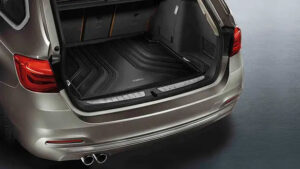 Podlahová rohož do zavazadlového prostoru je vyrobena z odolného plastu a je protiskluzová. V přední části má našité kapsy na levé a pravé straně, do kterých lze uložit drobné předměty. Velmi atraktivní je ozdobné vykládání z vysoce kvalitní nerezové oceli s vyraženým logem BMW.